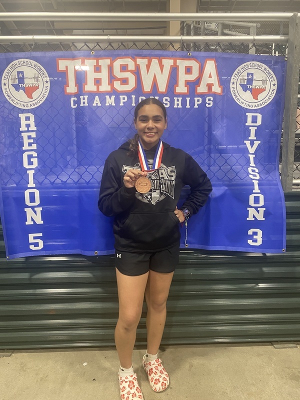 Advancing to the THSWPA Division 3 State Championships in Frisco at the Comerica Center was Frei Pizarro. Frei qualified to the state championship with a State Qualifying total of 800lbs.